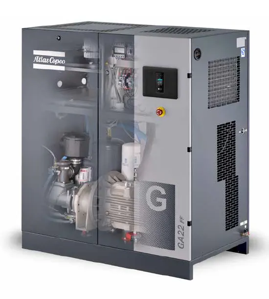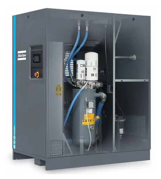 · Skrutkový kompresor so vstrekovaním oleja využíva hlavnú hnaciu sústavu spoločnosti Atlas Copco a efektívnu prevodovku pre veľmi vysokú spoľahlivosť