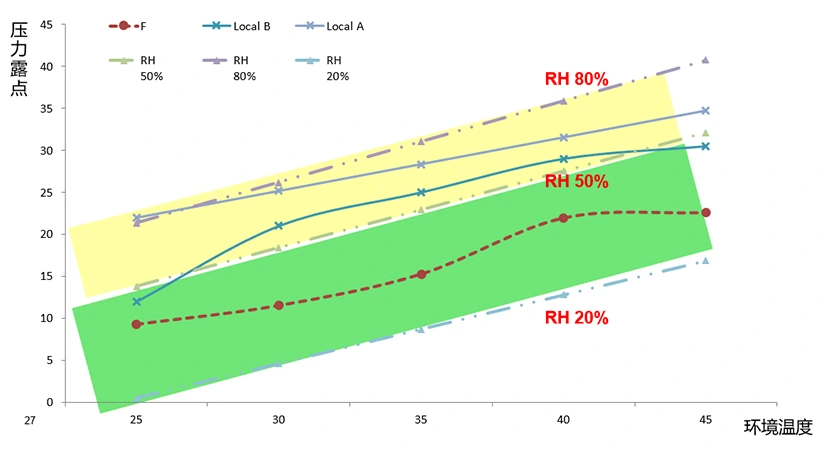 Ako ukazujú namerané údaje nižšie, pri vstupnom tlaku stlačeného vzduchu 7 barov, vstupnej teplote 35°C, tlakovom rosnom bode 7°C a konečnej výfukovej teplote 25°C je relatívna vlhkosť vzduchu 30%, čo účinne zabraňuje korózii potrubí a zariadení využívajúcich vzduch.