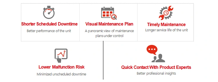 Vychutnáte si preventívnu diagnostiku, analýzu súčasného stavu a posúdenie trendov; 10-ročná záruka na kompresorový blok (na nový olejom zaplavený rotačný skrutkový vzduchový kompresor)