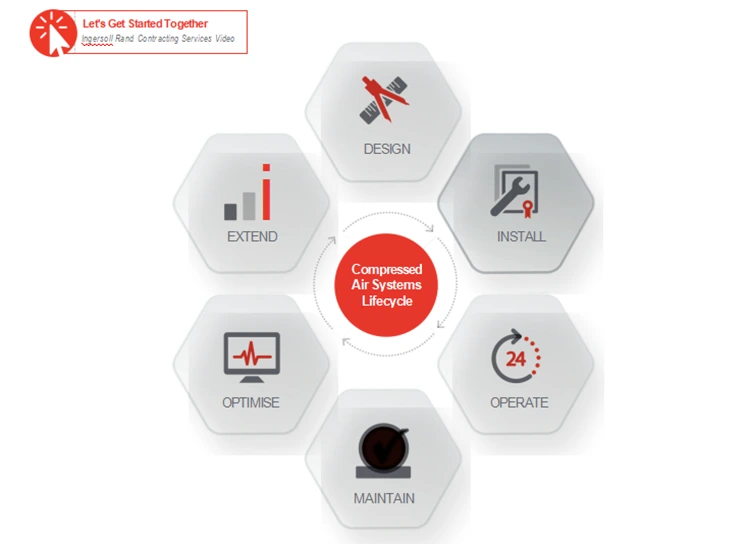 Váš podnik bude profitovať z partnerstva Ingersoll Rand prostredníctvom našich rozsiahlych skúseností a globálnych odborných znalostí, aby sa zaistila spoľahlivosť, nižšie náklady na údržbu, jednoduchá obsluha a optimalizácia systému.