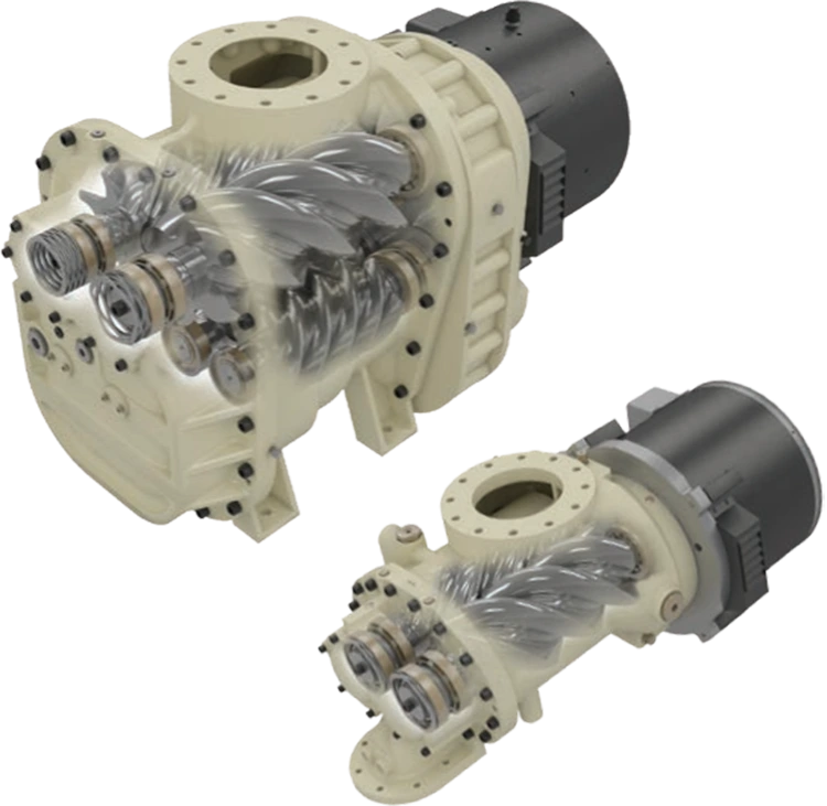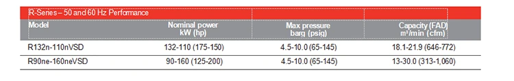 Jednostupňové a dvojstupňové kompresorové bloky svetovej triedy (dostupné v dvoch stupňoch od 90 kW) spolu s indukčným TEFC alebo voliteľným motorom s premenlivou rýchlosťou minimalizujú spotrebu energie.